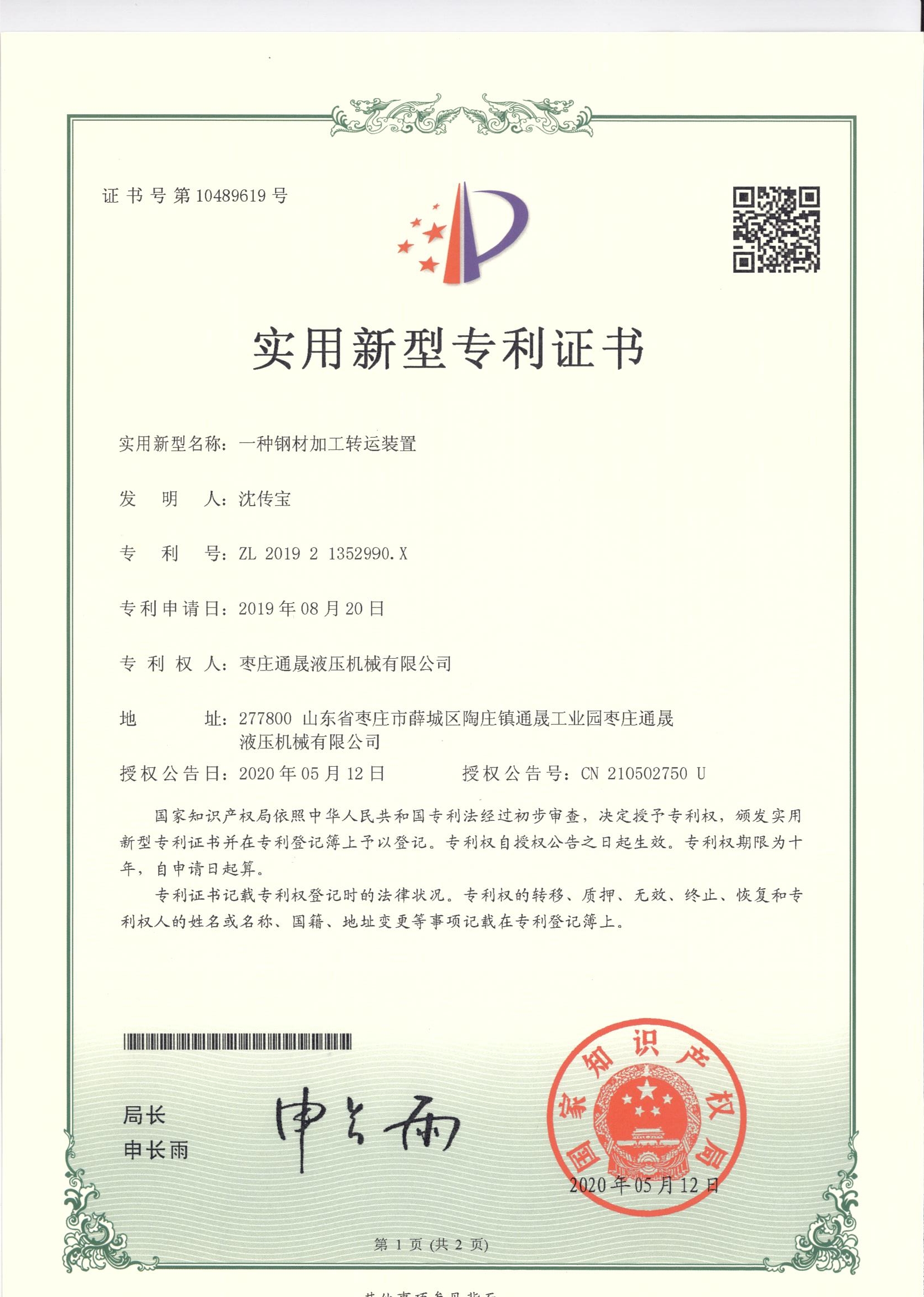 • 專利證書